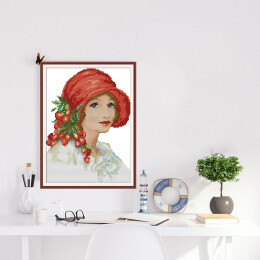 Жена с червена шапка - Комплект за шиене